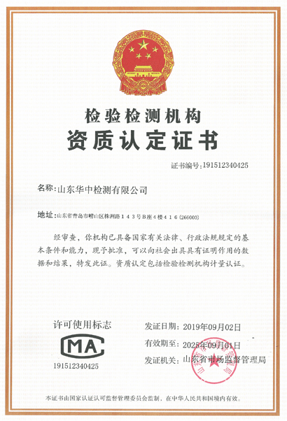 華中檢測是國家授權專業從事環境監測的第三方獨立檢測機構,通過山東省質量 技術監督局CMA計量認證,可出具有法律效力的CMA檢驗報告。公司為獨立法人單位,能夠獨立承擔法律責任,切實履行本公司“公正性聲明”,確保檢 測結果的公正性、科學性和準確性。